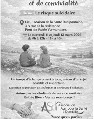 Moment de partage et de convivialité. Thème : le risque suicidaire Le 12 mars Agenda de 9 h à 12 h et de 13 h à 16 h