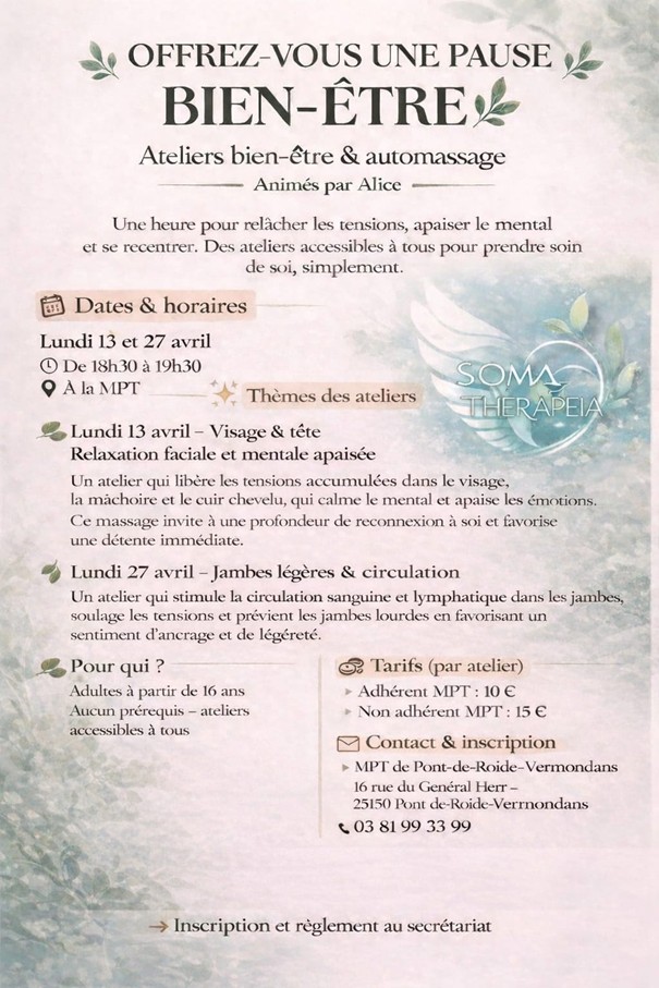 Des ateliers accessibles à tous pour prendre soin de soi, simplement.