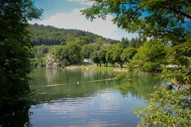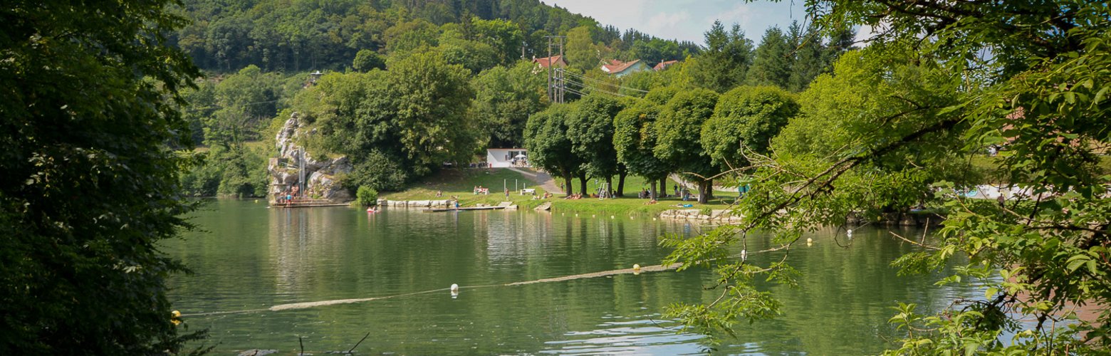 Située dans un méandre du Doubs à l'entrée de la ville, la plage offre durant l'été (juillet et août) différents services : aire de détente, petit et grand bain. Un plongeoir creusé dans la roche permet de sauter à différentes hauteurs.